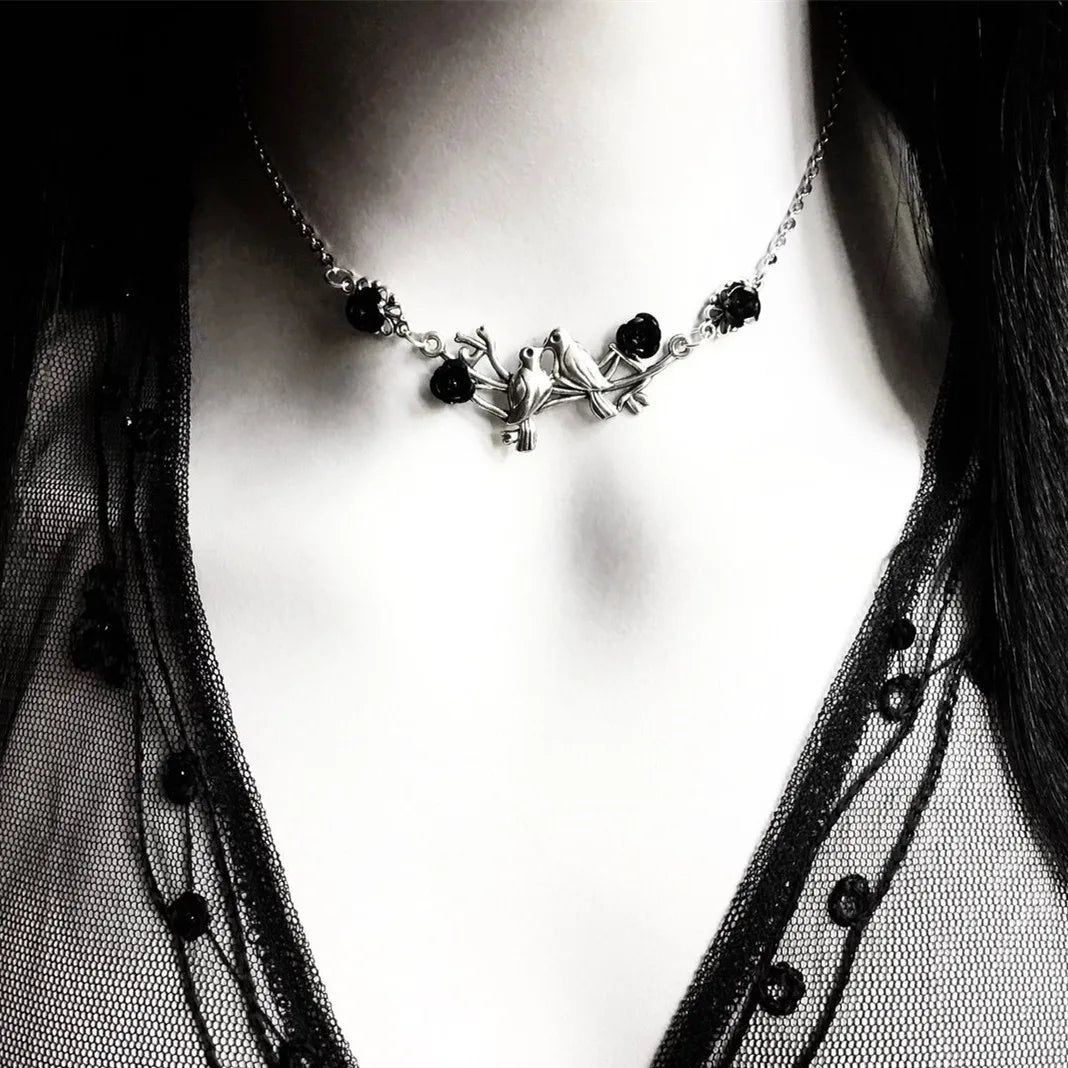 Gothic Rose Bird Charm Choker – Vintage Witch Jewelry for Women & Girls